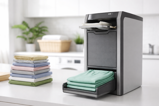 Le SmartFold Pro est un plieur de linge automatique moderne et intelligent qui plie vos vêtements automatiquement – rapidement, avec précision et sans encombrement.